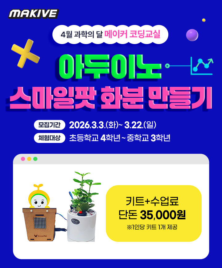 [메카이브] 4월 과학의달 메이커 코딩교실 💻 아두이노 스마일팟 화분 만들기 🪴 4/4(토), 4/11(토)