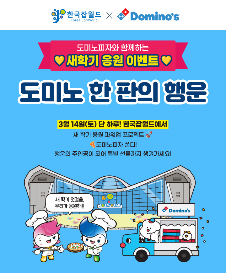 [현장 이벤트] 🍕도미노 한 판의 행운!🍀 3/14(토) 잡월드가 피자를 드려요~👍🏻