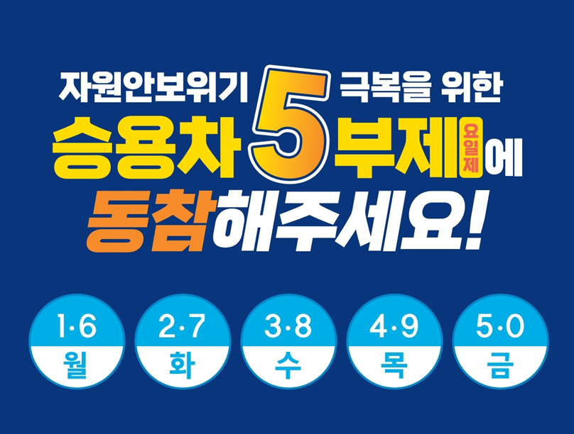 🚨 자원안보 위기극복을 위한 🚙승용차 5부제(요일제)에 동참해 주세요!