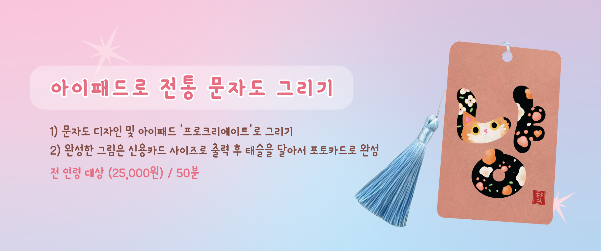 전통 문자도를 현대적으로 재해석해 아이패드로 그리고, 포토카드로 완성하는 클래스입니다.