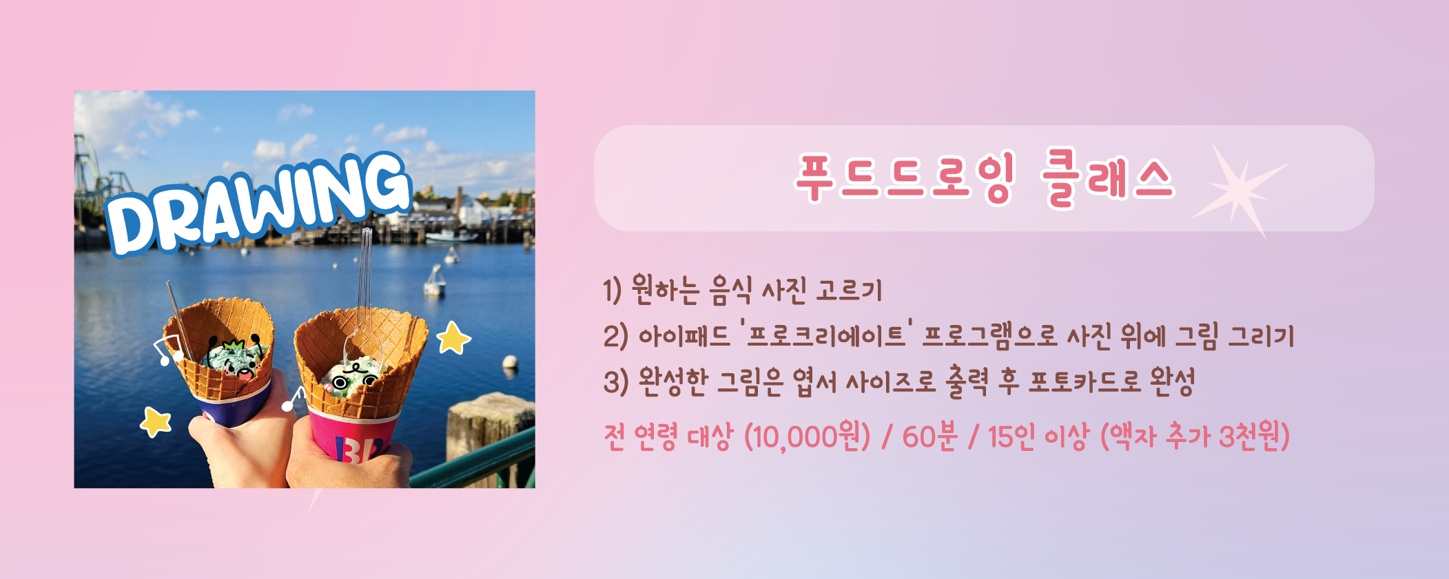 아이패드로 음식 사진 위에 그림을 그리고, 포토카드로 완성하는 클래스입니다.