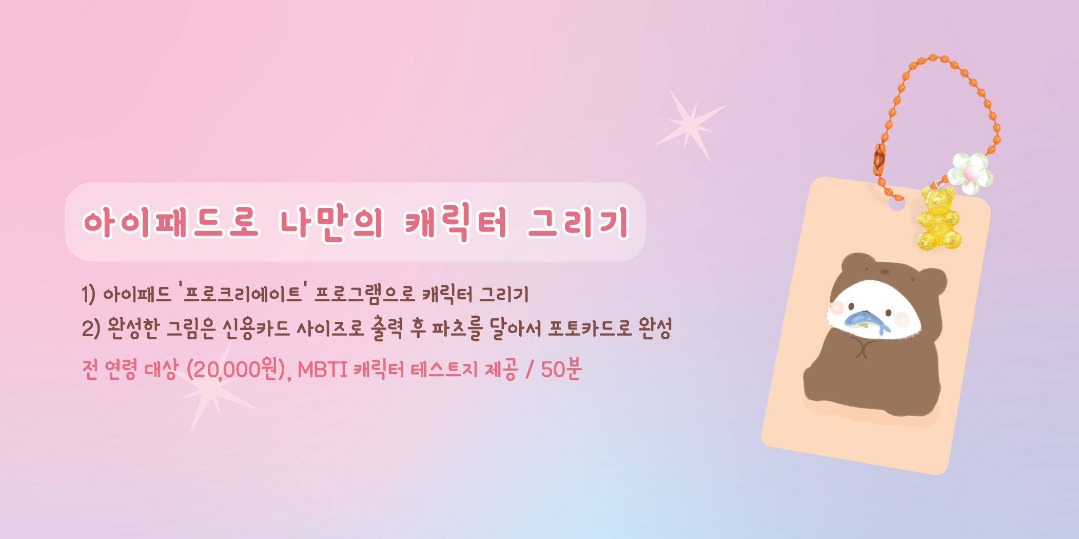 아이패드로 나만의 캐릭터를 그리고, 포토카드로 완성하는 클래스입니다.