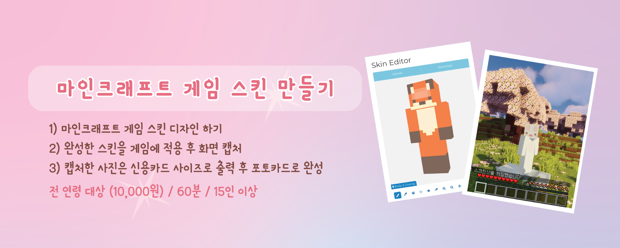 마인크래프트 캐릭터 스킨을 직접 디자인하고 만들어볼 수 있는 클래스입니다.